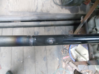 Ok yesterday I got my lengthened steering link back from the welder. We added 9in to the center with some cold rolled mild steel rod. The welder, Daren of ArcTec in Santa Cruz, took a 16" bar rod and turned 4" down on each end to fit inside the split stock steering link. Then he welded the seam and drilled and put in welds into the inner shafts to make it stronger.